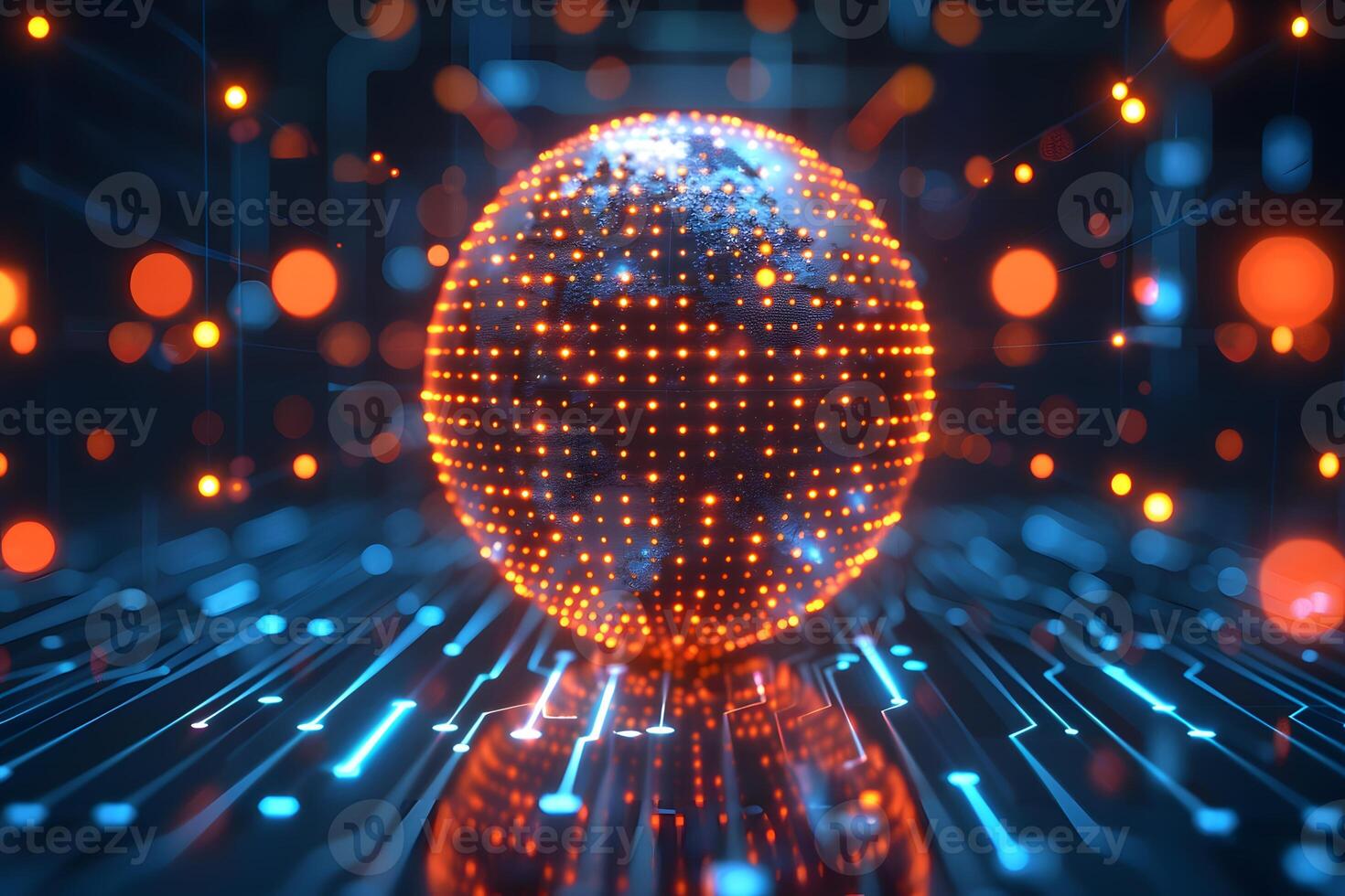 Digital Sphere of Glowing Particles with Futuristic Circuit Design for Tech Innovation Projects Pro Photo