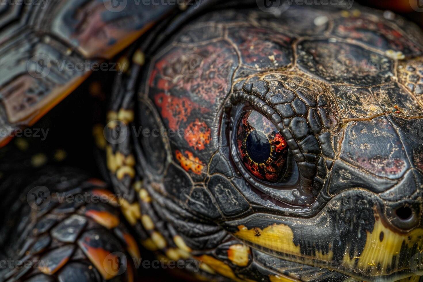 vibrant Eastern Box Turtle displays intricate patterns on its shell while remaining stationary against a clean white backdrop highlighting its unique features. Pro Photo