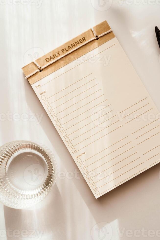 Top view minimalist daily planner with a simple design, featuring checkboxes and lines for tasks Pro Photo