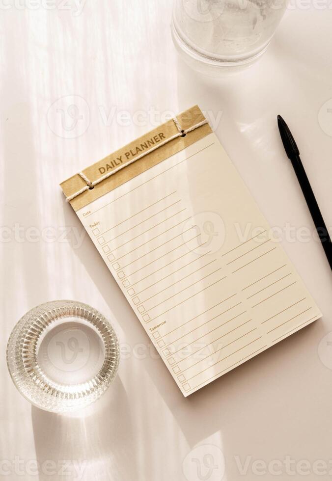 Top view minimalist daily planner with a simple design, featuring checkboxes and lines for tasks Pro Photo