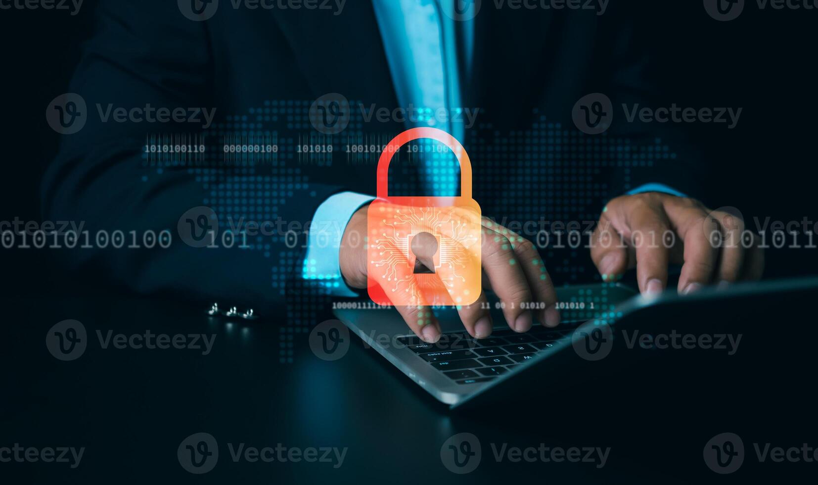 Human hand using computer to surf the internet There are security systems to protect against hackers, Internet, Network security, Cybersecurity and Global network security technology concept. Pro Photo