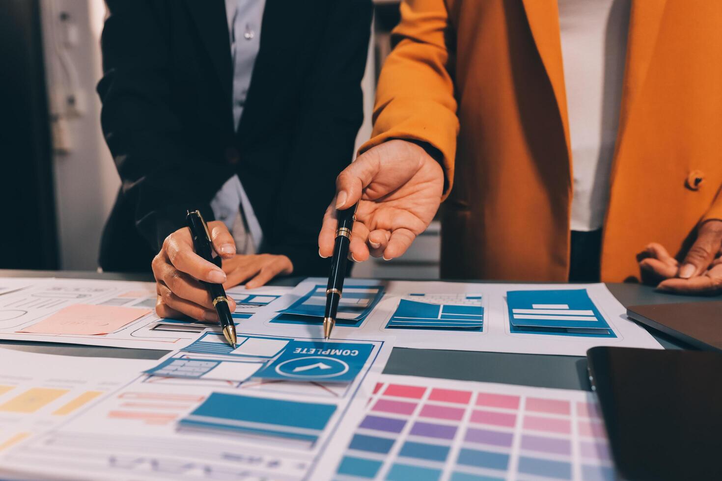 The designer team is designing the uxui system to make the uxui system work well on new phones and support system updates. Website development concept UI UX front end designer Free Photo