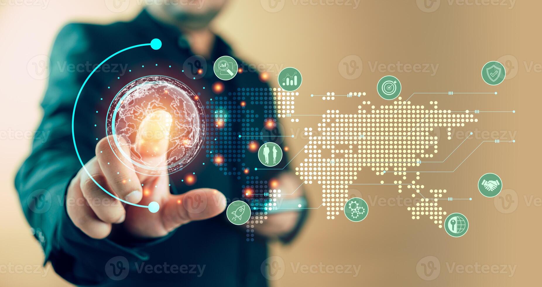 Businessman touching global structure networking and data exchanges connection. Financial and banking Pro Photo