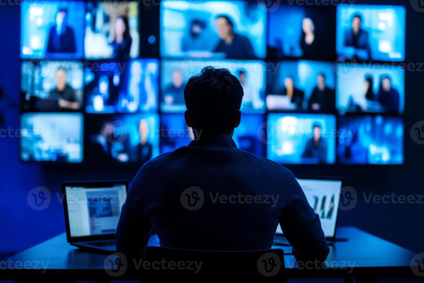 This visual highlights the dynamic nature of streaming and communication through multiple faces, emphasizing the importance of social networking and connections in the digital age Pro Photo