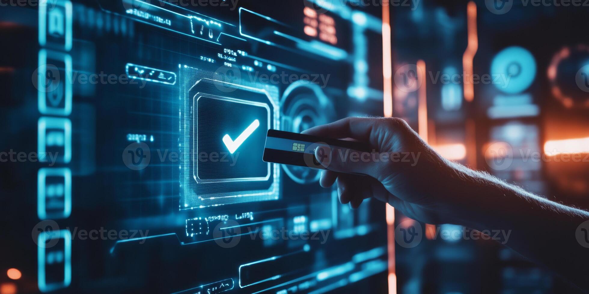 A user confirms their secure online payment via a userfriendly interface with a verification tick, enhancing digital banking security and improving the ecommerce experience for all Pro Photo