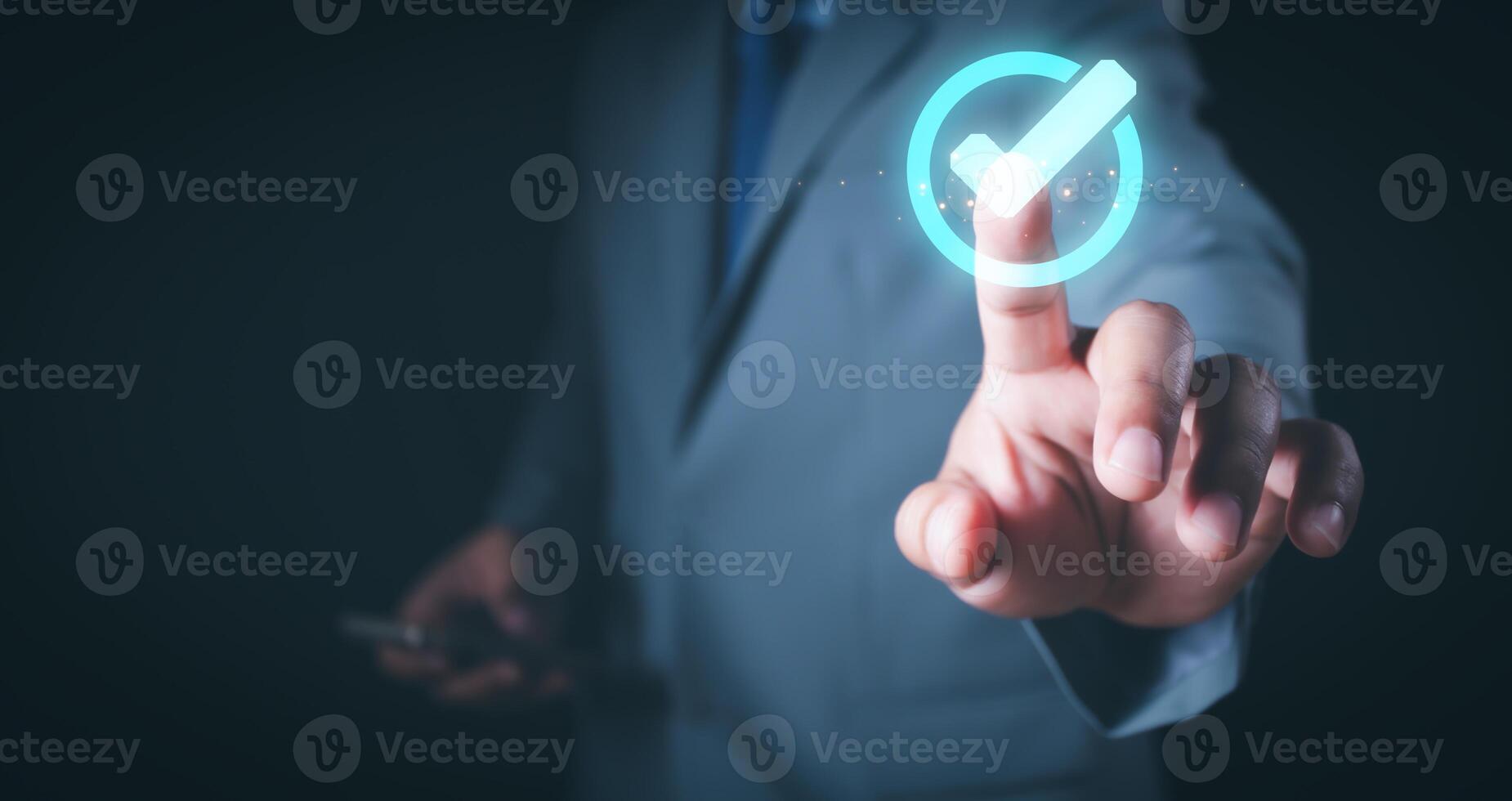 Quality management with Quality Assurance or QA and Quality Control or QC and improvement. Standardization and certification concept. Compliance to regulations and standards. Concept with manager. Pro Photo