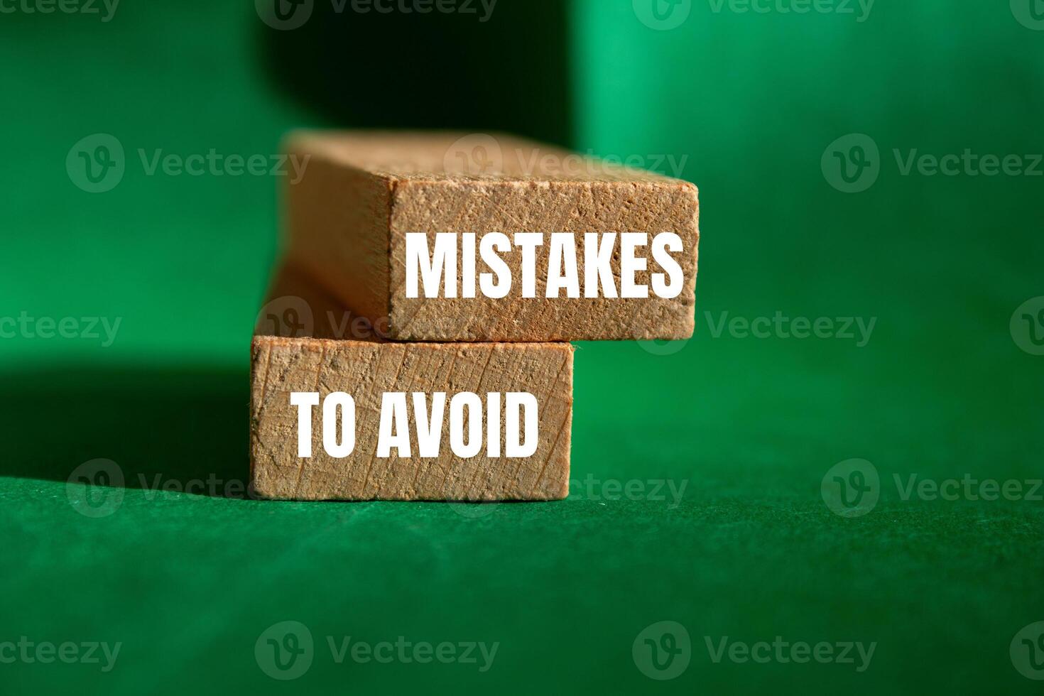 Mistakes to avoid message written on wooden blocks with green background. Conceptual mistakes to avoid symbol. Copy space. Pro Photo