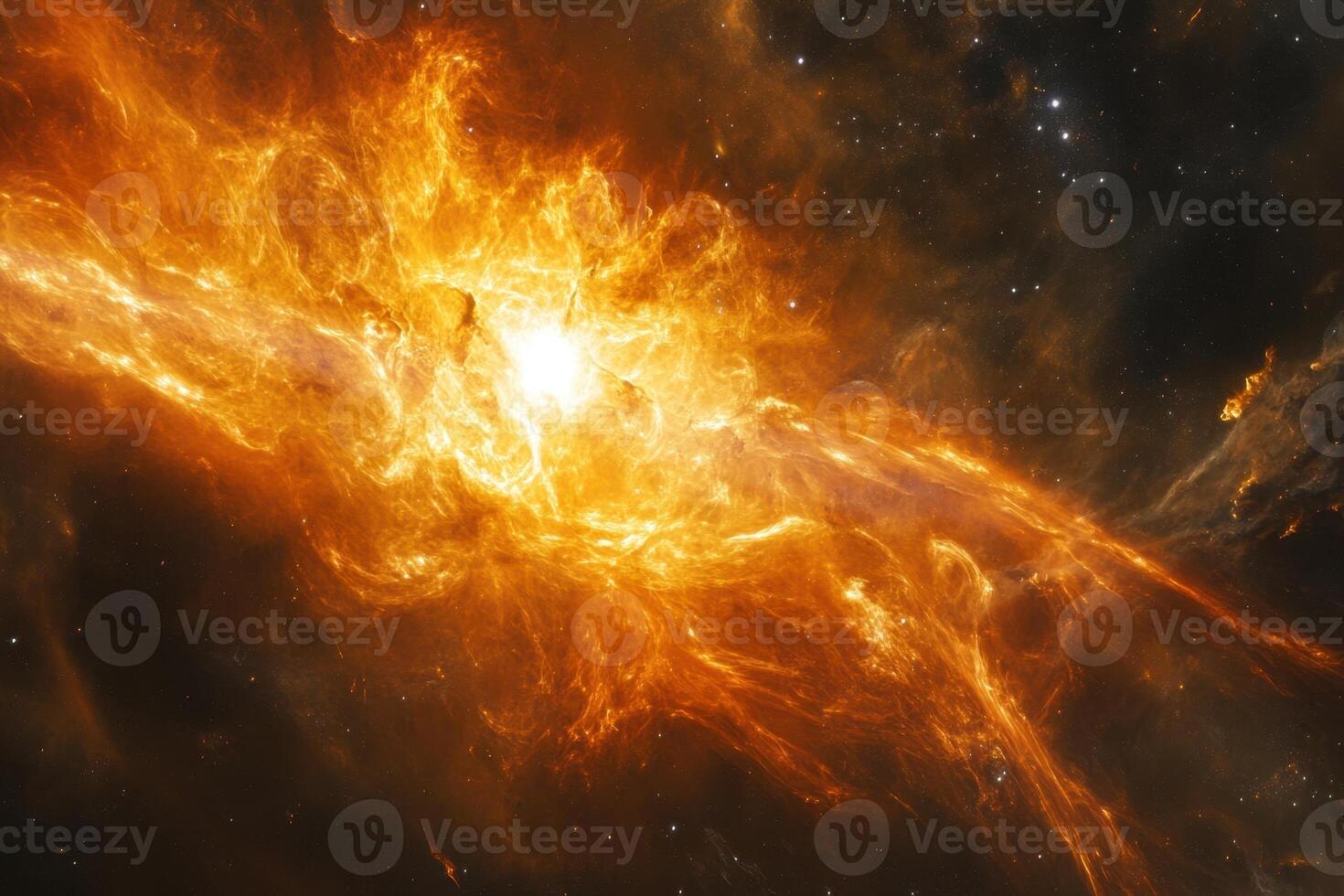 A fiery nebula explodes with light in a dark space. Pro Photo