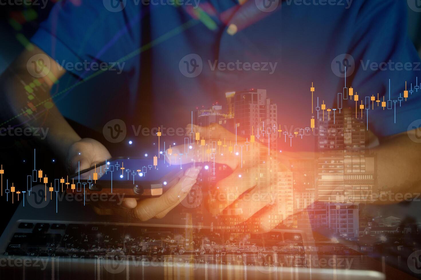 data analysis trading ideas Businessman working with data chart with AI Robot showing the use of artificial intelligence in investment trading. digital transformation technology Pro Photo