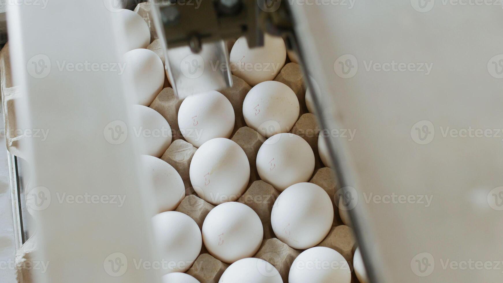 Automatic process of checking and printing on chicken eggs, sorting eggs, assortment Pro Photo