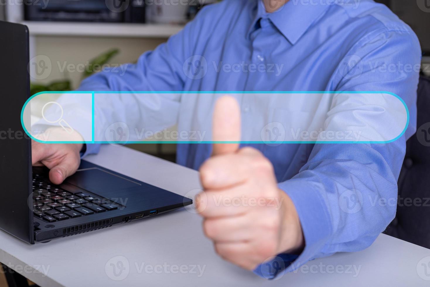 Searching Browsing Internet Data Information Networking Concept with blank search bar.close up of businessman. Pro Photo