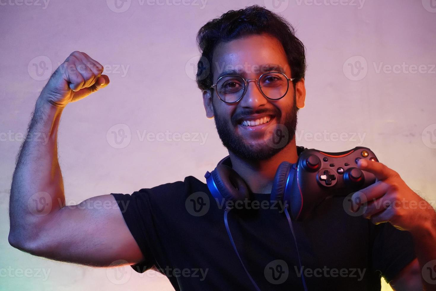 exited man using playing video game using gaming wireless joystick- gaming concept Pro Photo
