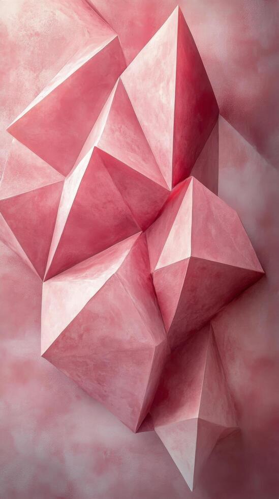 Abstract geometric shapes in soft pink tones creating a textured wall design photo