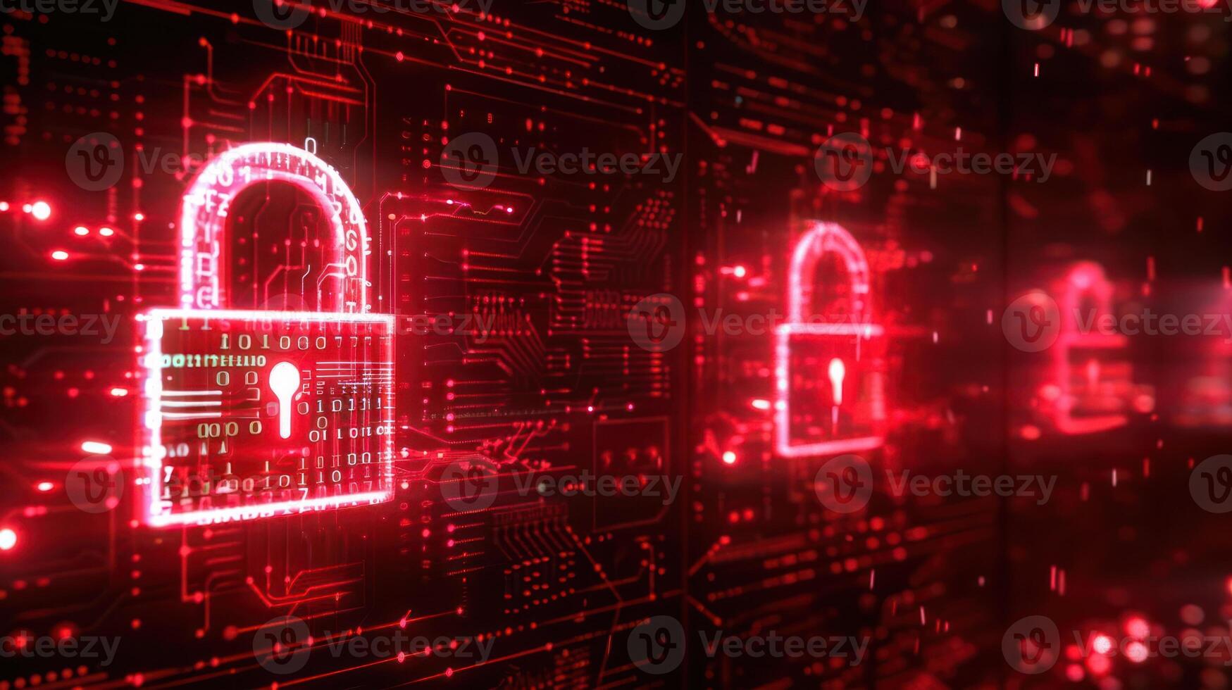 Digital locks on a circuit board background, symbolizing cybersecurity and data protection. Pro Photo