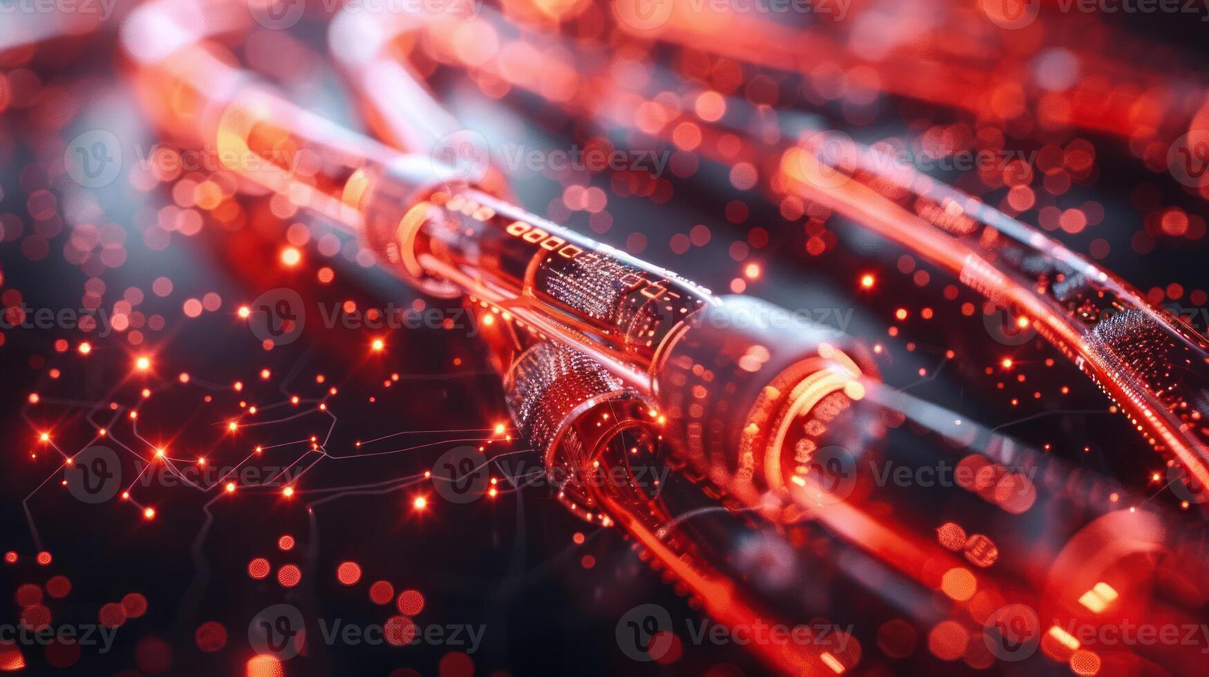 Abstract representation of interconnected glowing data cables and circuitry. Pro Photo