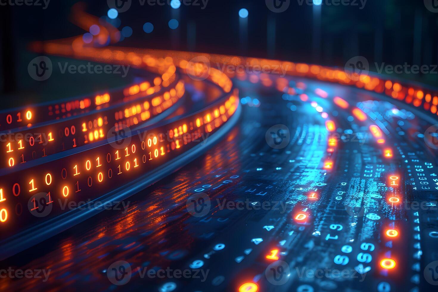 Futuristic Digital Highway with Binary Code Lights for Technology and Innovation Pro Photo
