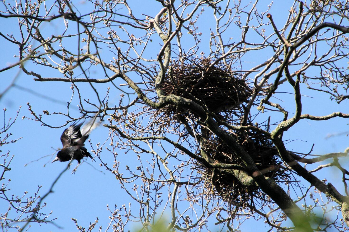 A bird is sitting on a nest in a tree Free Photo