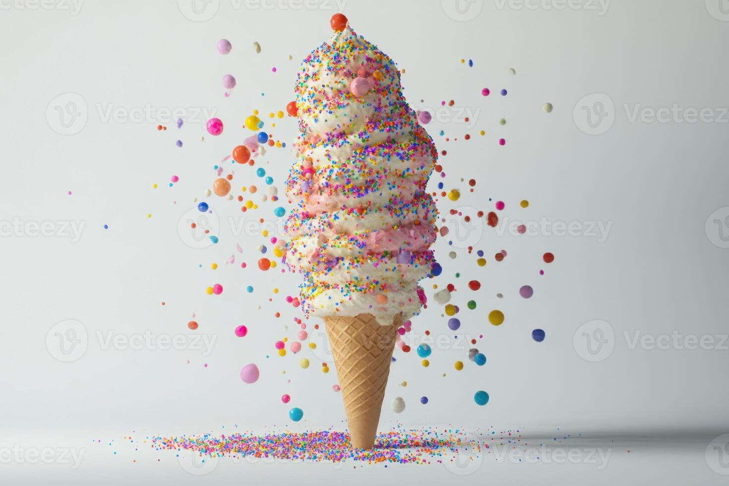 A Colorful Ice Cream Cone With Sprinkles Exploding Pro Photo