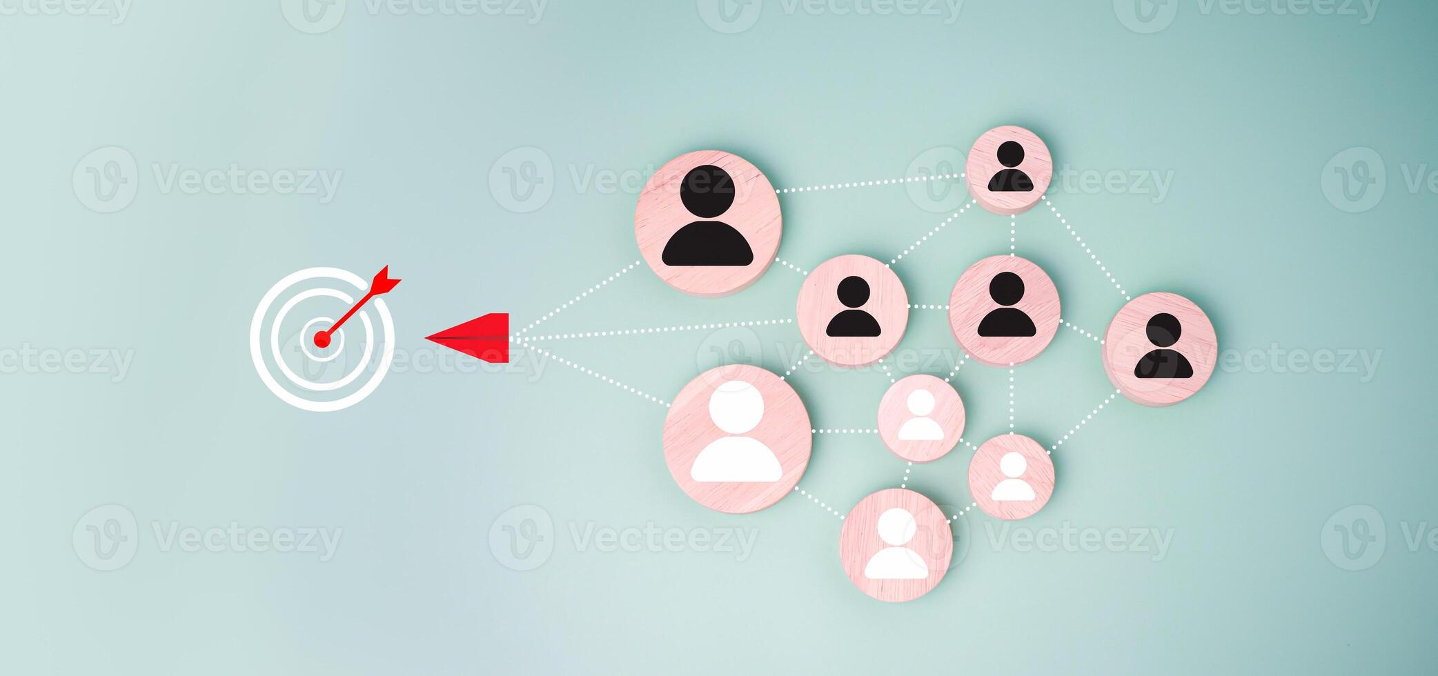 Dartboard and red arrow connection linkage with human icon for customer focus target group and customer relation management concept, Target customer, Marketing plan and strategies. Pro Photo