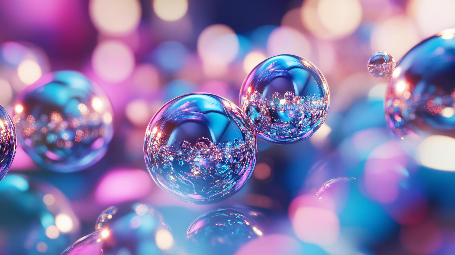 Collection of colorful, shiny, and reflective spheres. The spheres are arranged in a way that creates a sense of depth and movement. Scene is one of playfulness and whimsy photo