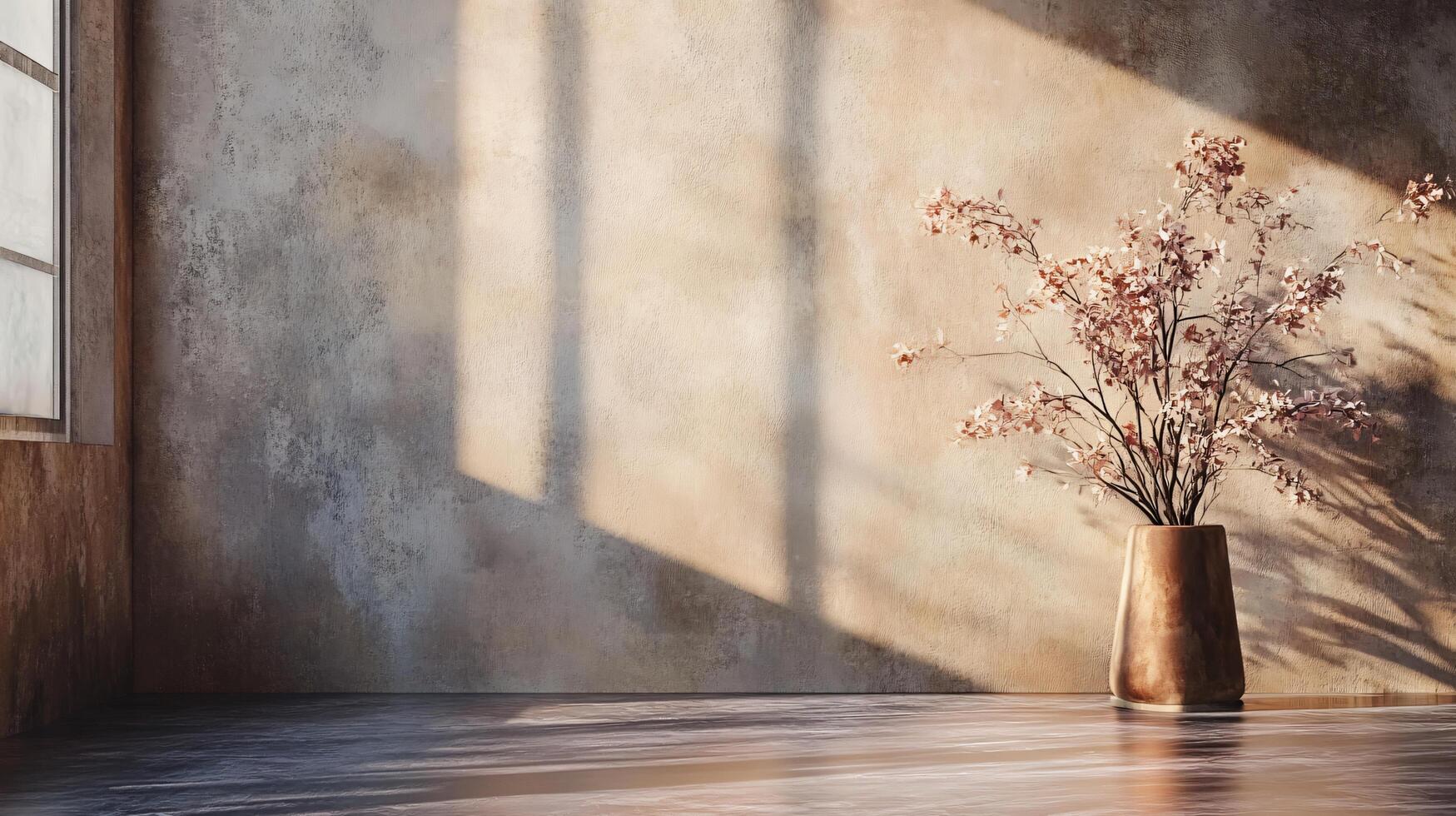 Vase with flowers sits in a room with a window. The room is empty and the vase is the only object in the room Free Photo