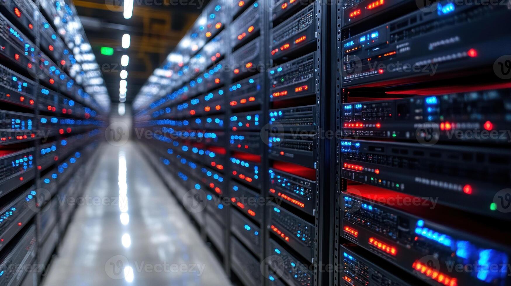Rows of powerful servers light up the data center, showcasing advanced technology and operational efficiency Pro Photo