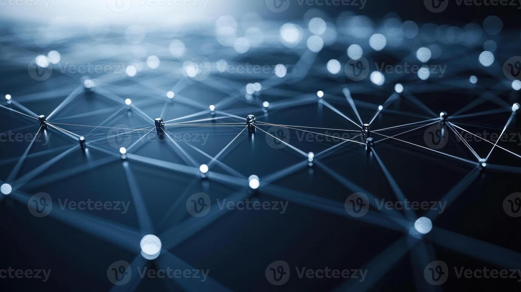 Interconnected nodes are illuminated against a dark background, highlighting a technological network Pro Photo
