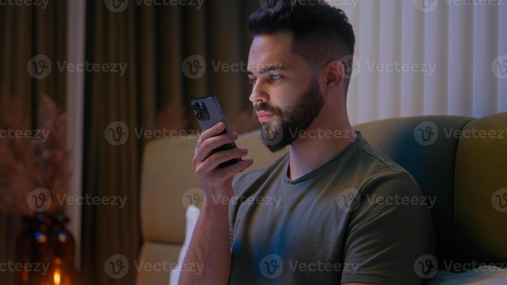 Close up man guy male user mobile phone smartphone technology web online internet social networking vision eyes addict stuck night insomnia browsing virtual cyberspace eyesight connected watching face Pro Photo