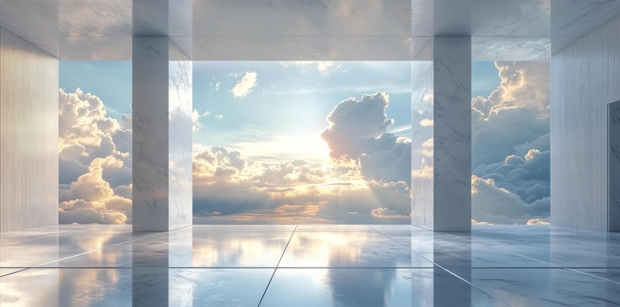 Vast open space with bright clouds and sunlight in modern architecture during daytime Free Photo