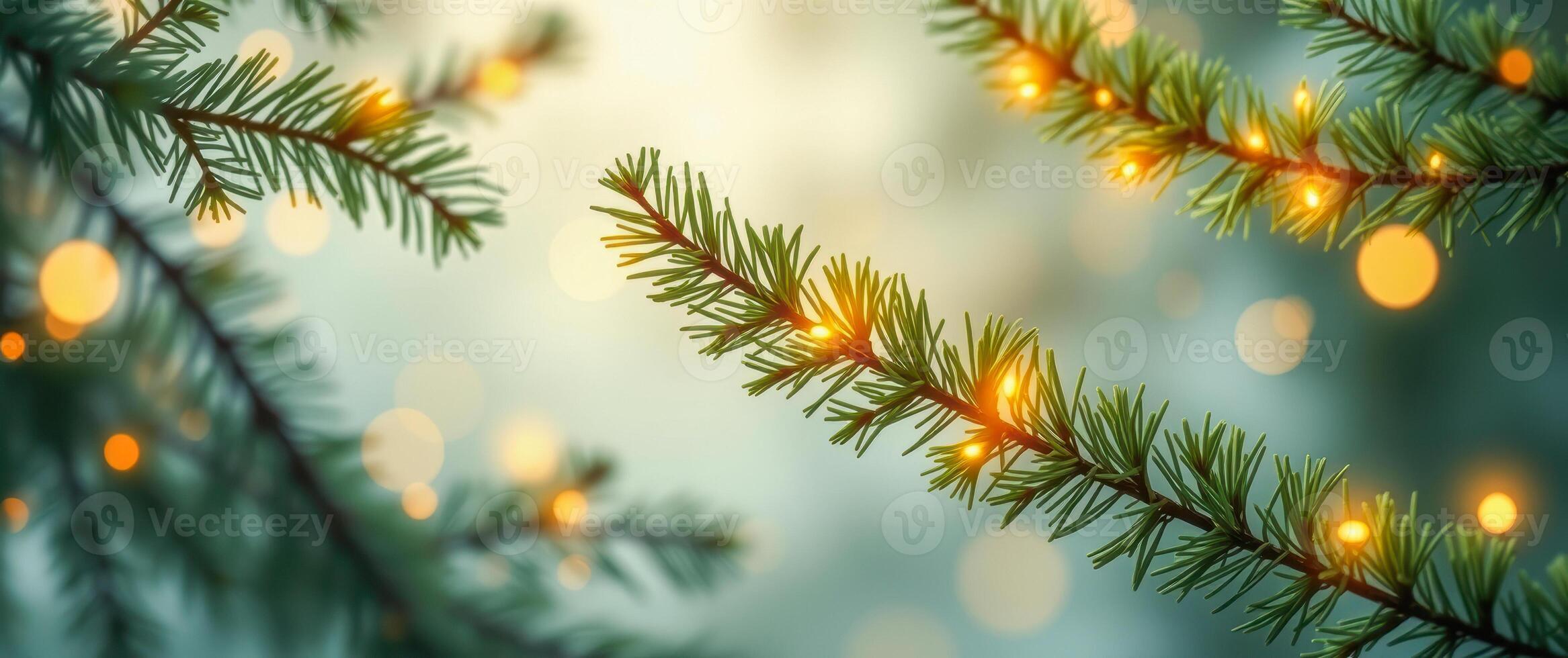 illuminated evergreen branches with soft bokeh background Pro Photo