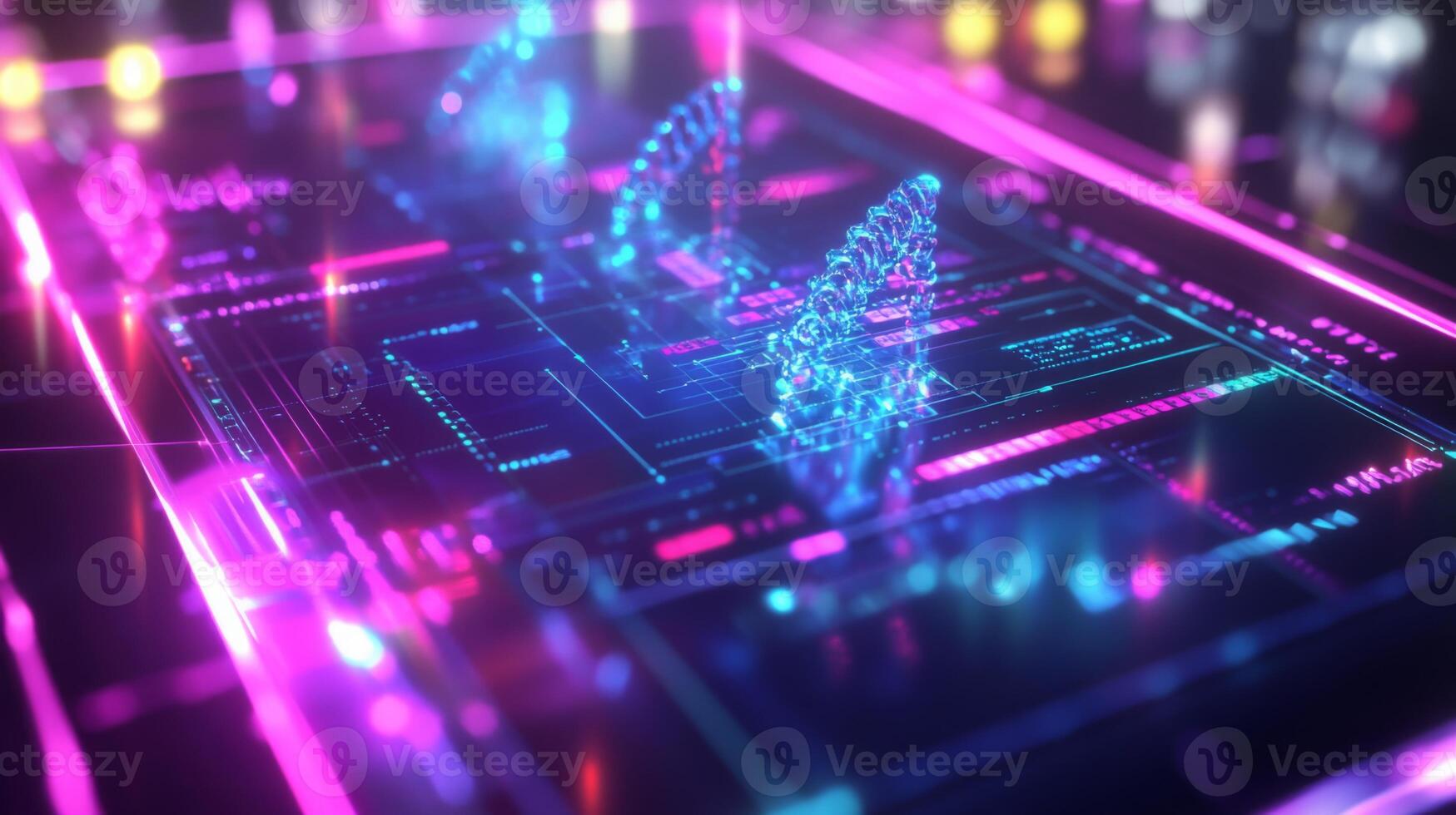 A vivid display of computer technology features intricate bio-inspired elements in a vibrant neon setting. Pro Photo