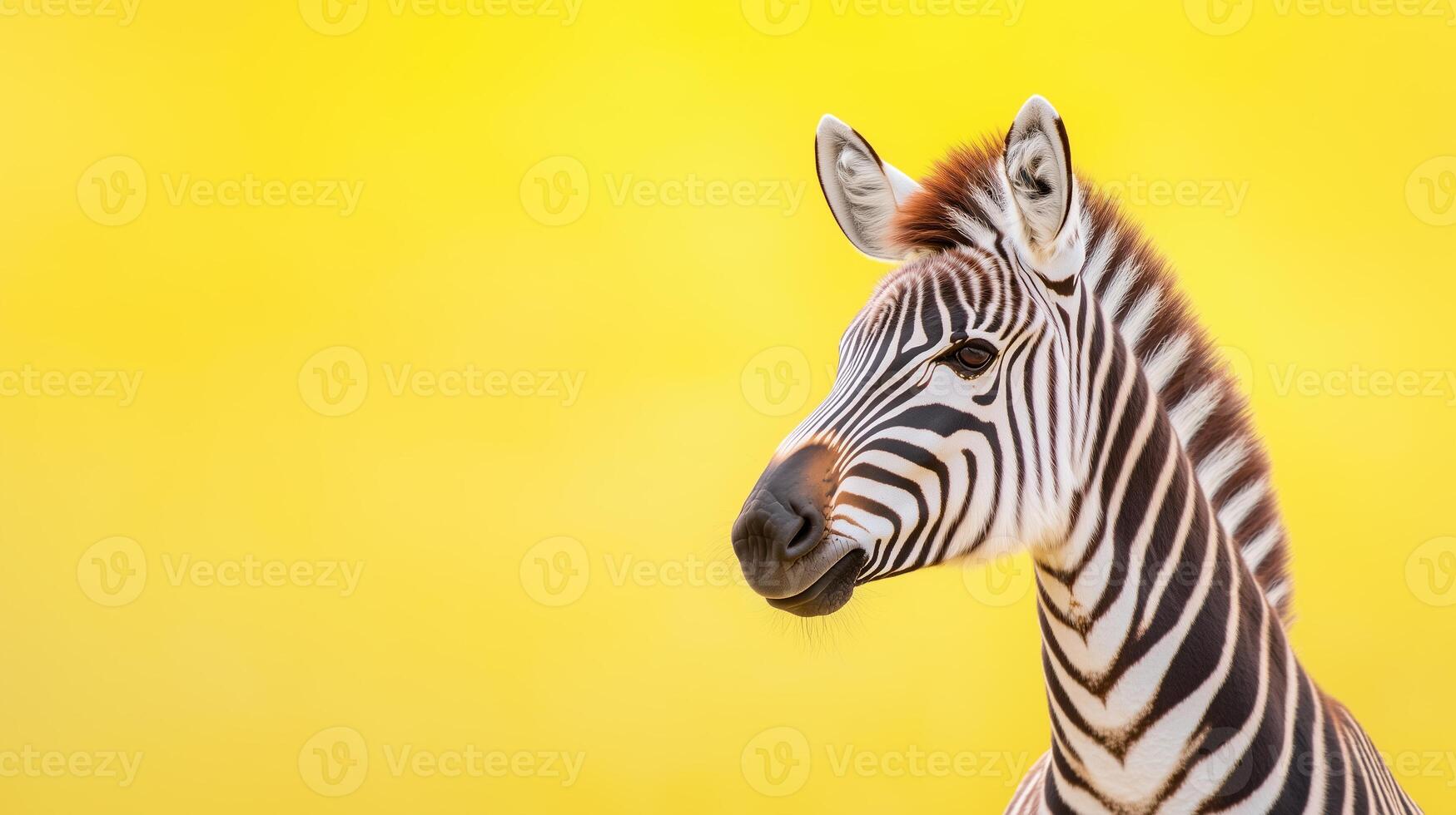 Zebra Standing in Profile with Stripes Clearly Visible Against Bright Yellow Background, Emphasizing Unique Black and White Patterns, Perfect for Wildlife and Nature Themes, Striking and Bold Art Pro Photo