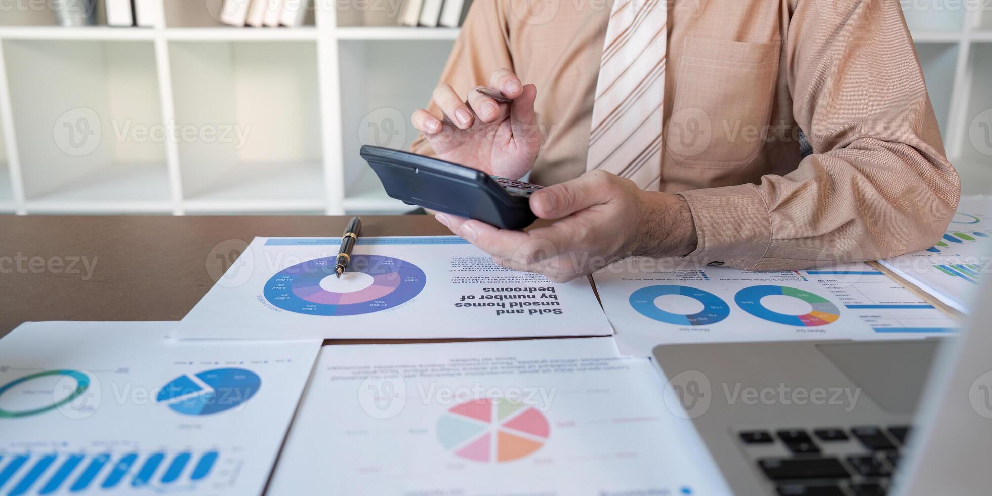Business analysis report creation office environment digital content professional setting close up view data visualization insights Pro Photo