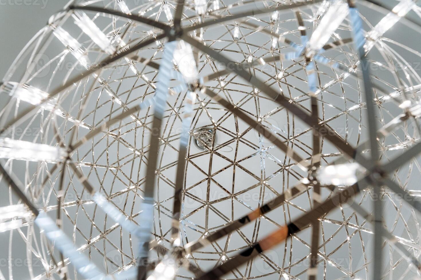 The image showcases a stunning metal structure with symmetrical patterns inside, beautifully illuminated by lights. Its a fine example of intricate craftsmanship and thoughtful design Pro Photo