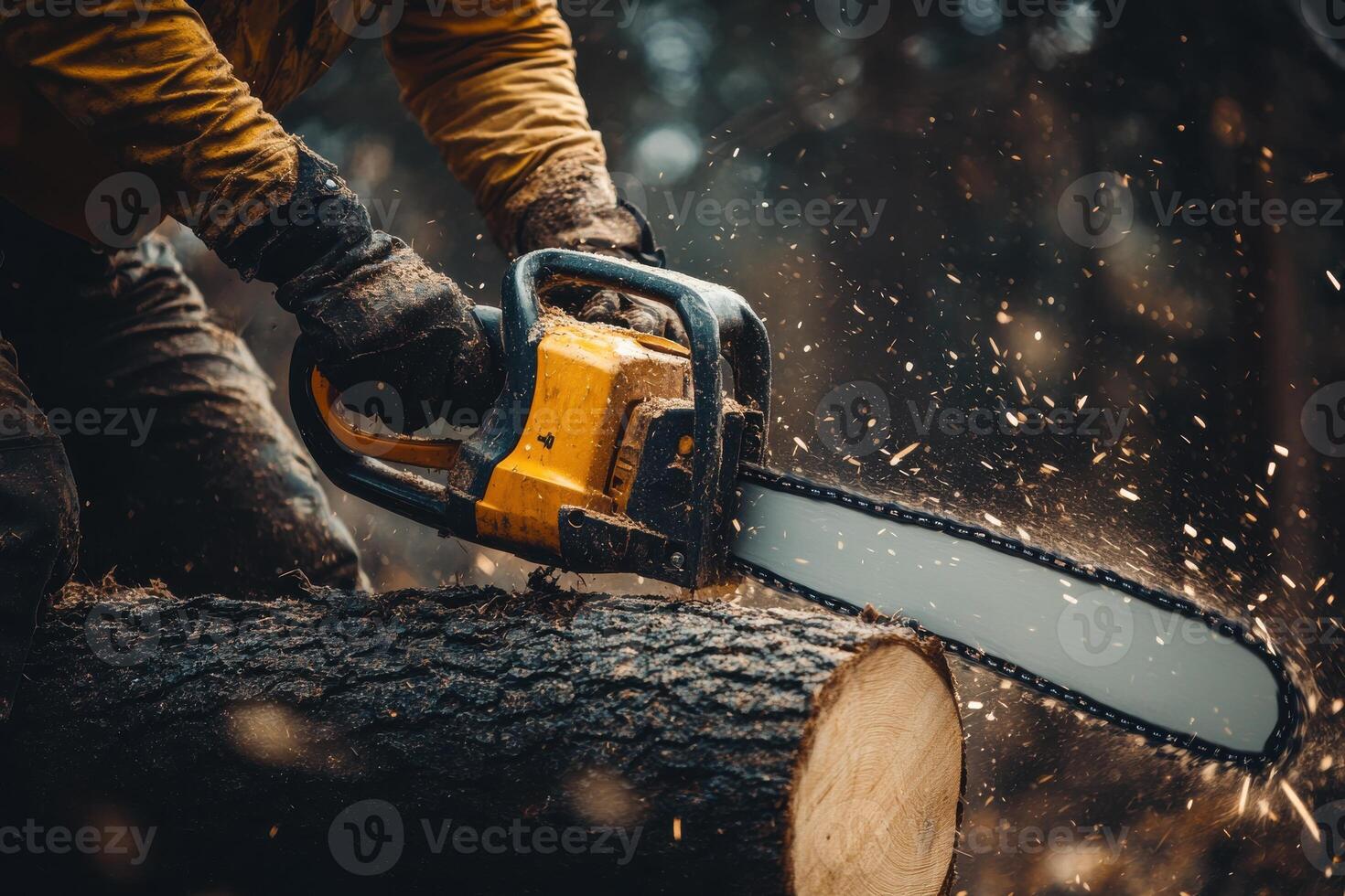 Logger Cutting Tree Branches with a Chainsaw for Sustainable Forestry Practices Pro Photo