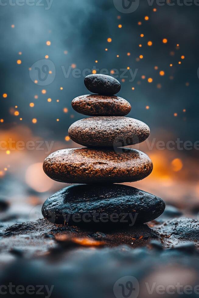 Stacked stones create a tranquil focal point in a calming environment Pro Photo
