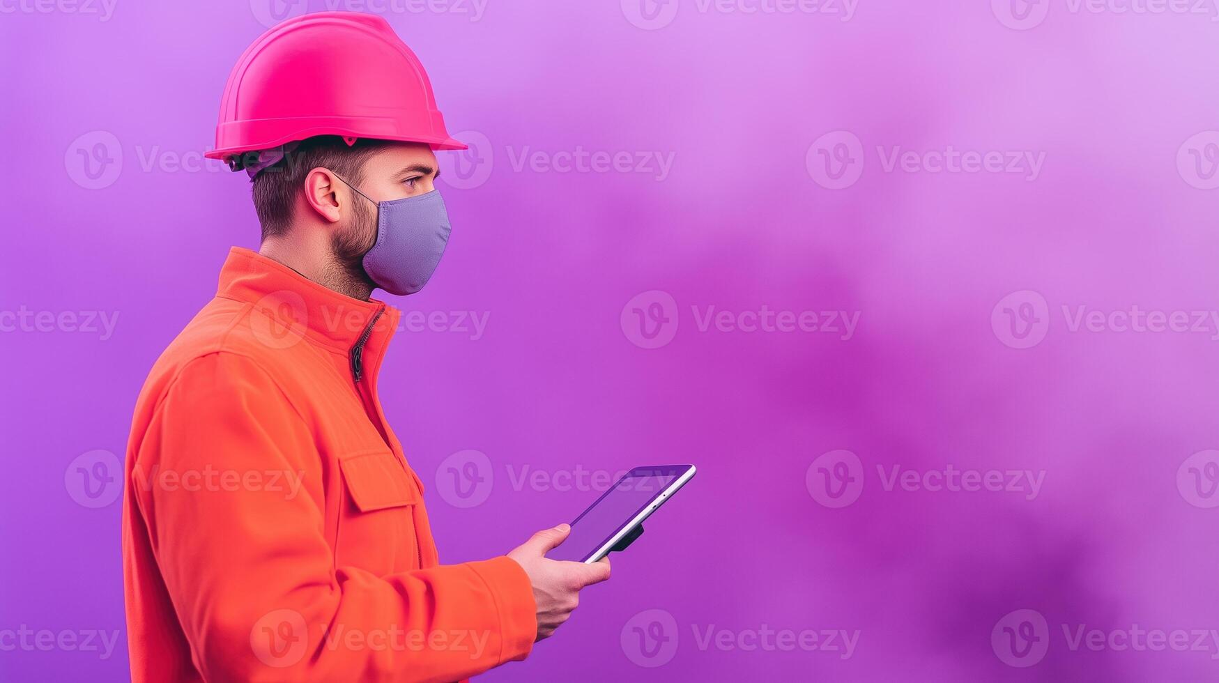 Worker Using Thermal Imaging Tablet on Construction Site with Hard Hat for Safety and Efficiency in Modern Building Projects Pro Photo