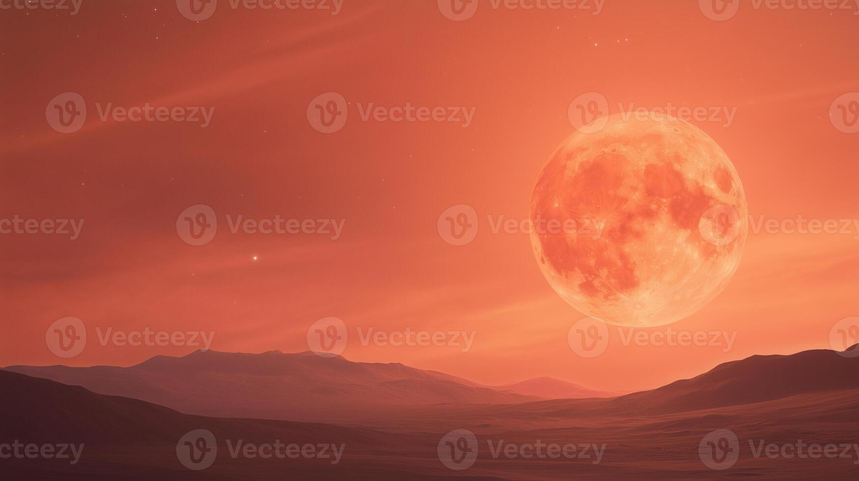 Mars Rover Exploring Rugged Red Surface of Martian Landscape Underneath a Large Full Moon in Daylight with Mountains in the Background Highlighting Space Exploration and Interplanetary Discovery Pro Photo