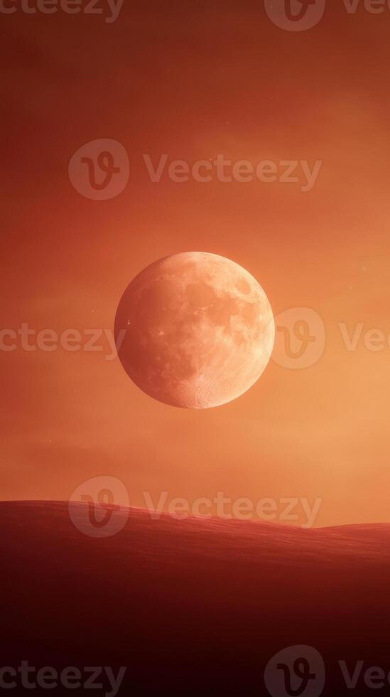 Mars Rover Traveling Across Rocky Red Planet Surface with Large Moon in Background Capturing Exploration and Discovery of Martian Terrain in Space Setting Under Orange Sky Pro Photo