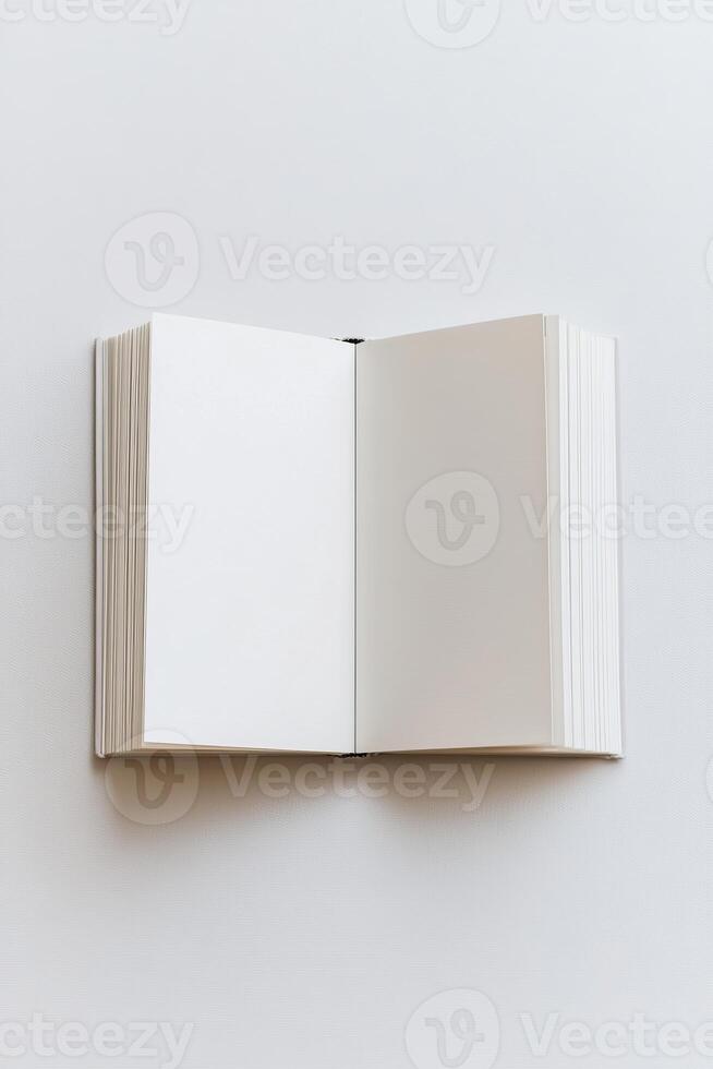 Open book with blank pages on a white background, perfect for design, art, and educational concepts. Pro Photo