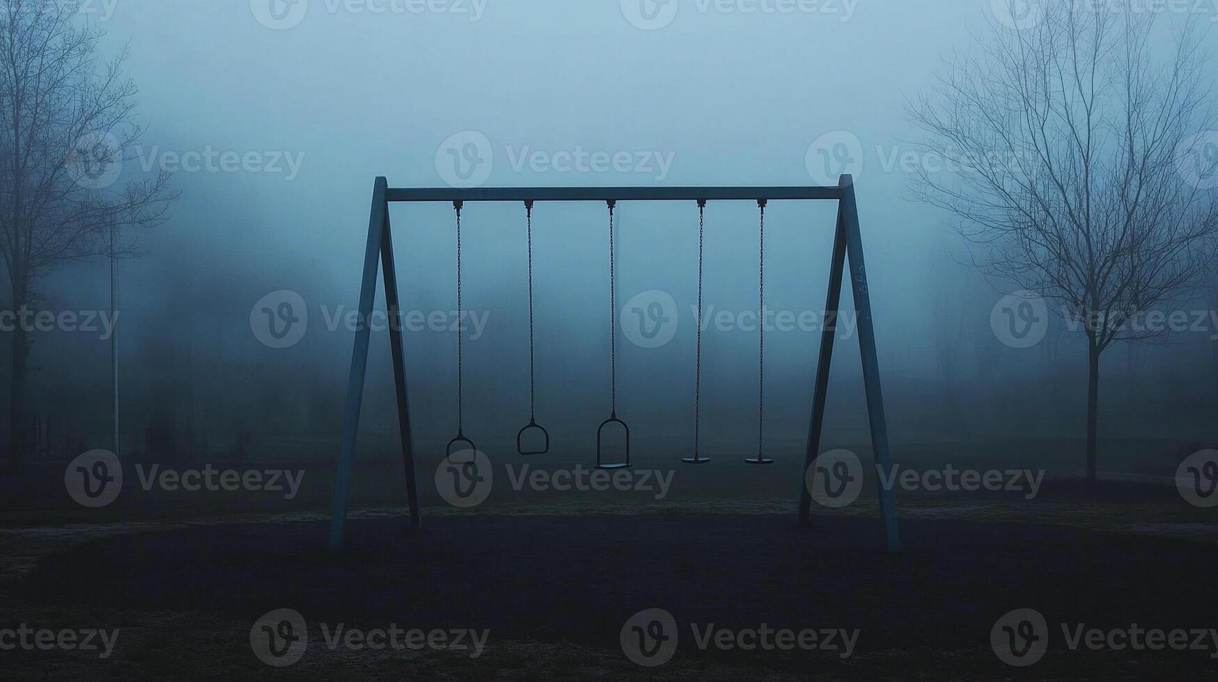 Atmospheric photography of a foggy deserted playground with empty swings in a mysterious misty setting Pro Photo