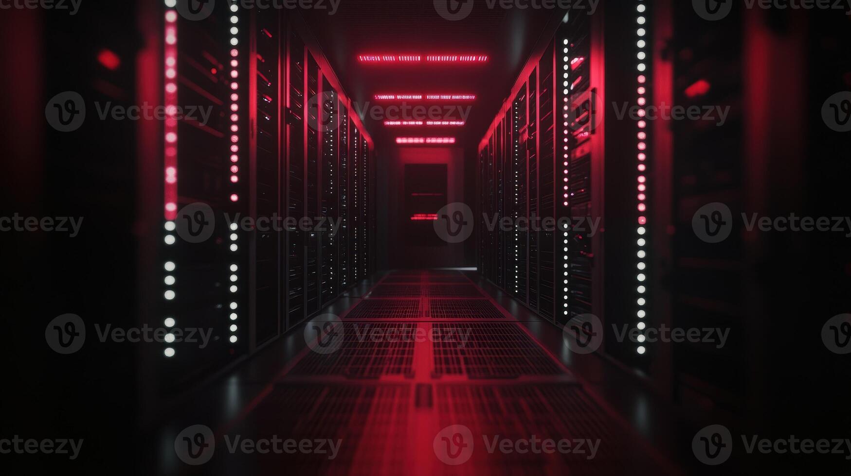 A focused shot of a data center with blinking servers capturing the essence of the backend operations that support digital twin technology with streams of data flowing between assets Pro Photo