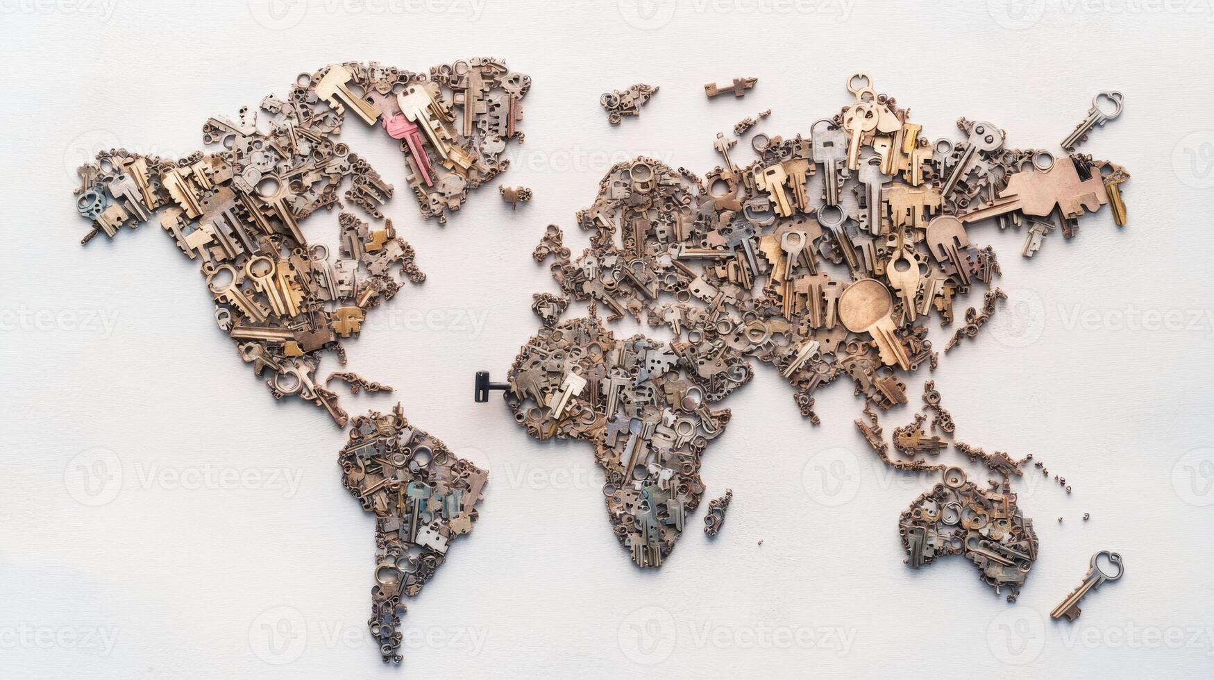 World map created from an assortment of keys showcasing global geography with intricate designs Pro Photo
