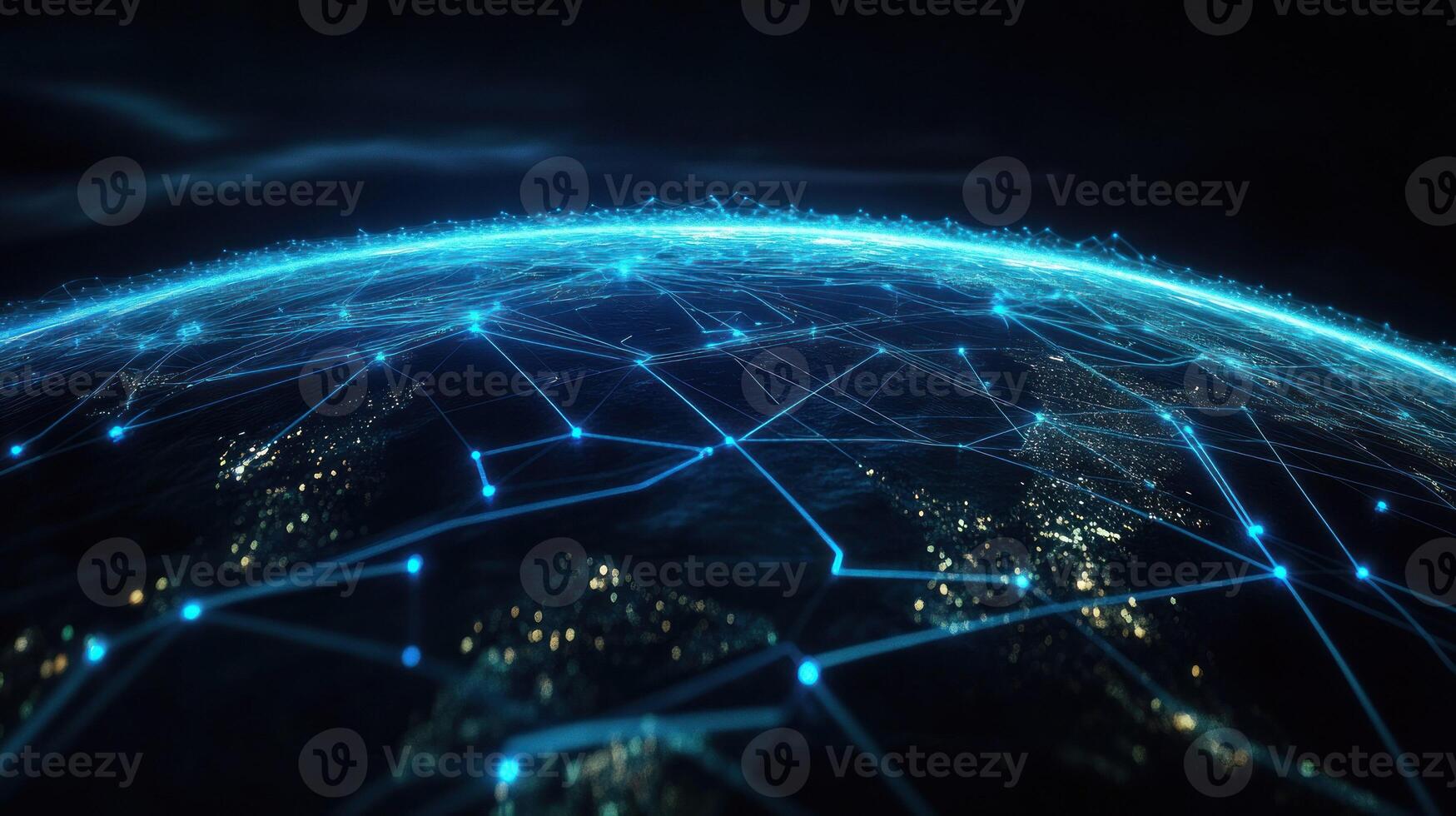Global Network of Illuminated Lines and Nodes on a Dark Earth Pro Photo