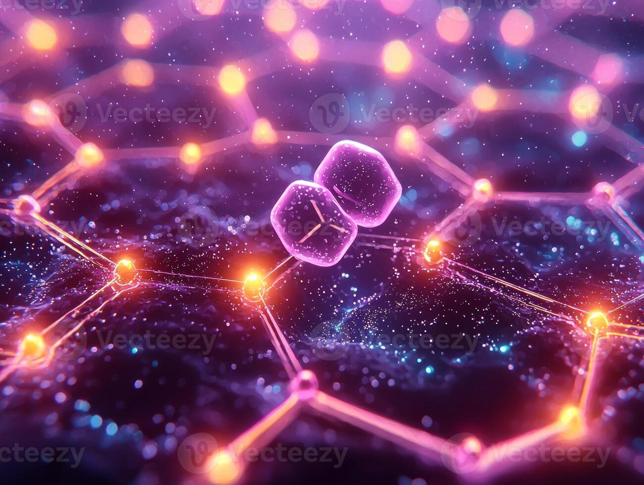 Clean and colorful geometric designs showcase serotonin and dopamine molecules against backdrop of soft gradients and glowing lines highlighting their scientific significance and Pro Photo