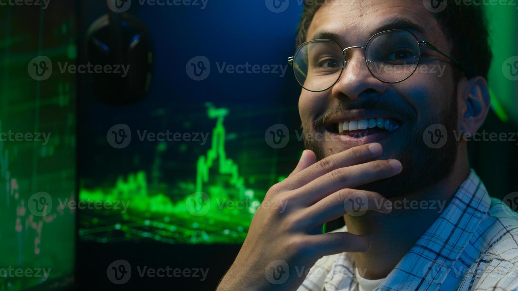 Thoughtful pensive Arabian Indian man thinking pondering solution programmer coder hacker worker cyberspace analysis male guy puzzled trader broker freelancer doubtful face online engineer developer Pro Photo