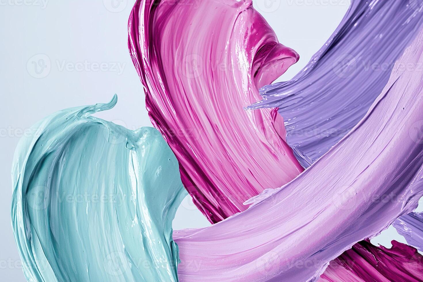 Vibrant brushstrokes in pink, lavender, and teal create an abstract liquid effect on a light background. There is ample space for text overlay, perfect for digital or print design Pro Photo