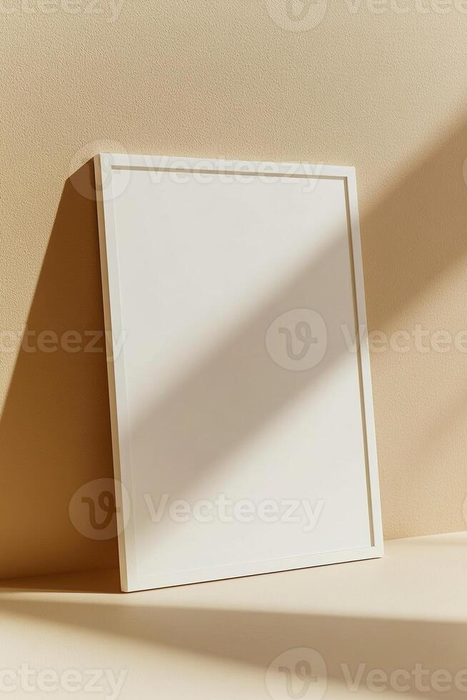 The Nordic-style floating frame showcases a clean white border against a smooth beige background, creating a modern feel. Soft shadows enhance the design and space for text overlay Pro Photo