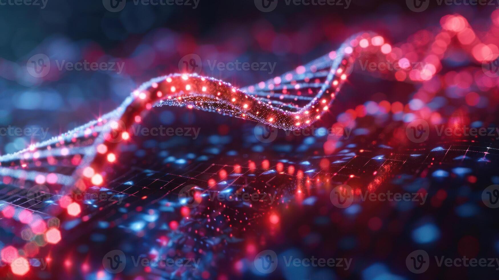 Abstract visualization of glowing data waves in red and blue tones with a digital background Pro Photo