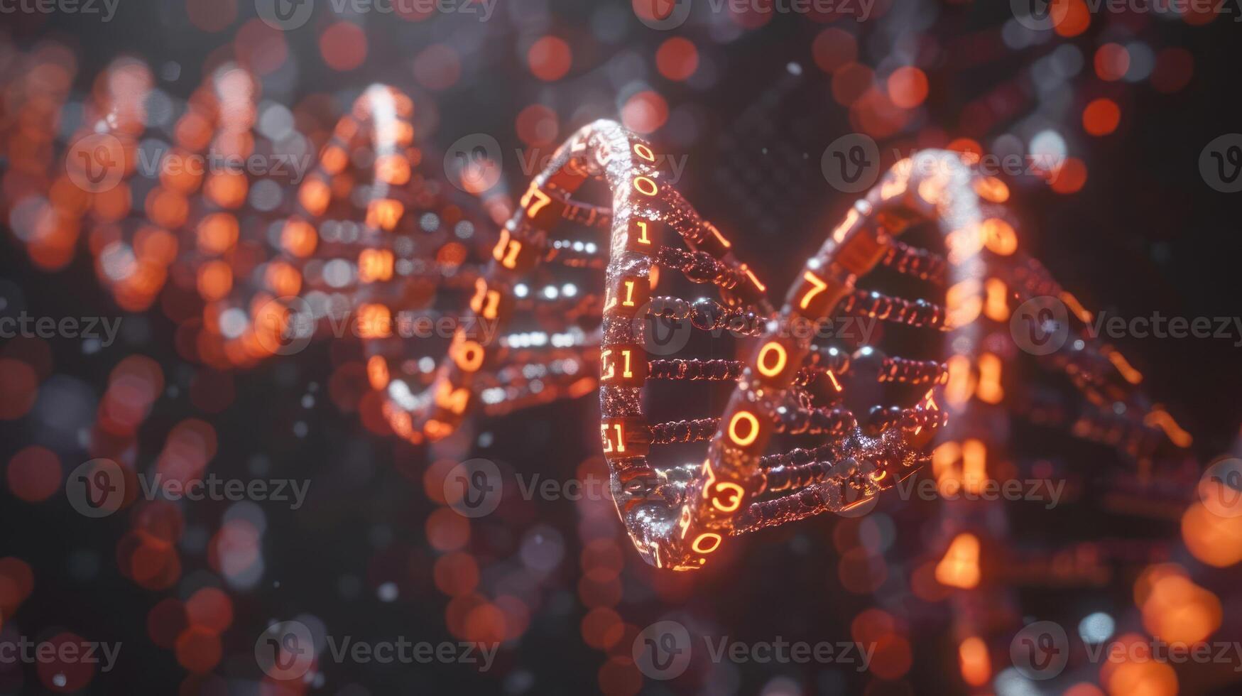 Abstract representation of digital DNA strands with glowing numbers, symbolizing data and technology Pro Photo